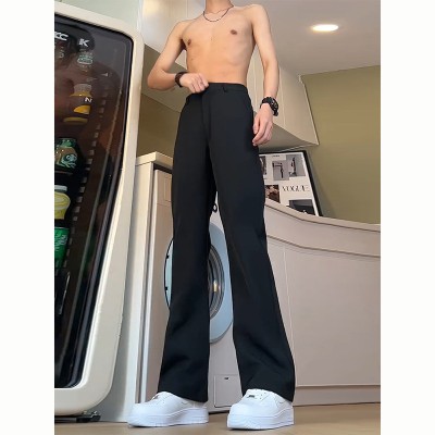 Black straight pants men's summer high waist slim scimitar flared trousers