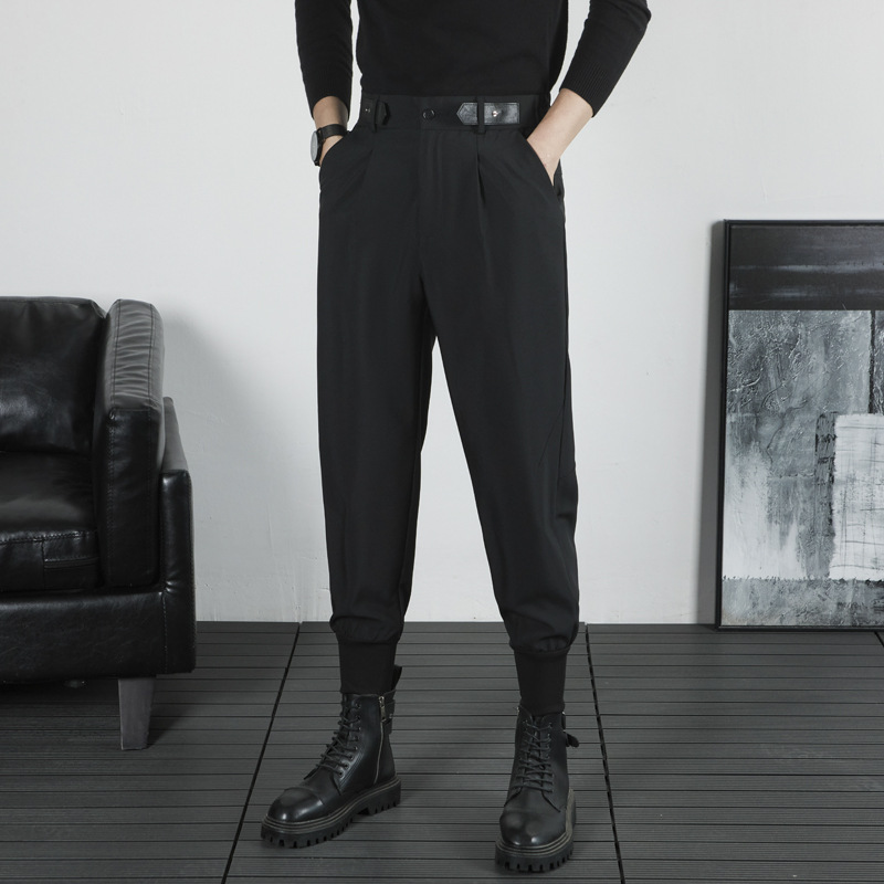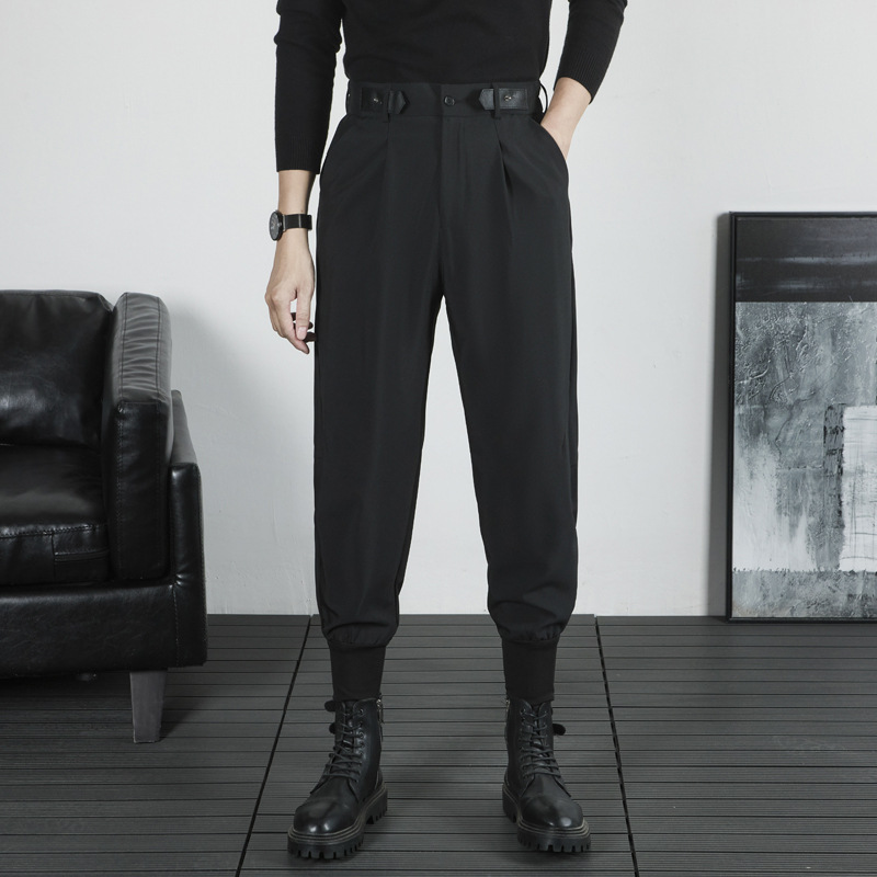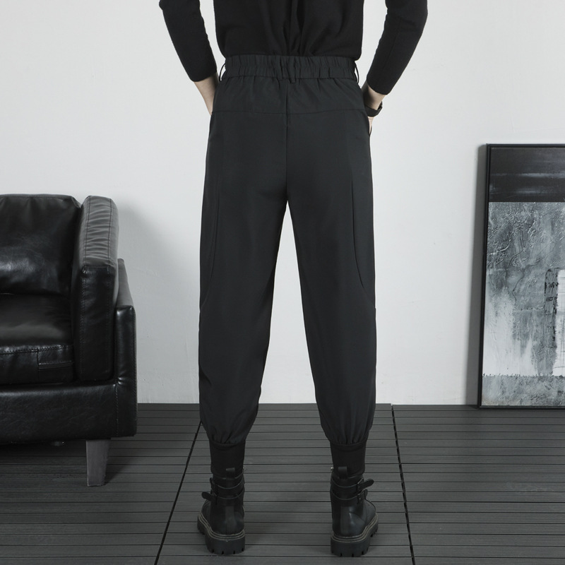 Spring and autumn drapey cuffed trousers black warrior handsome casual harem nine-point trousers