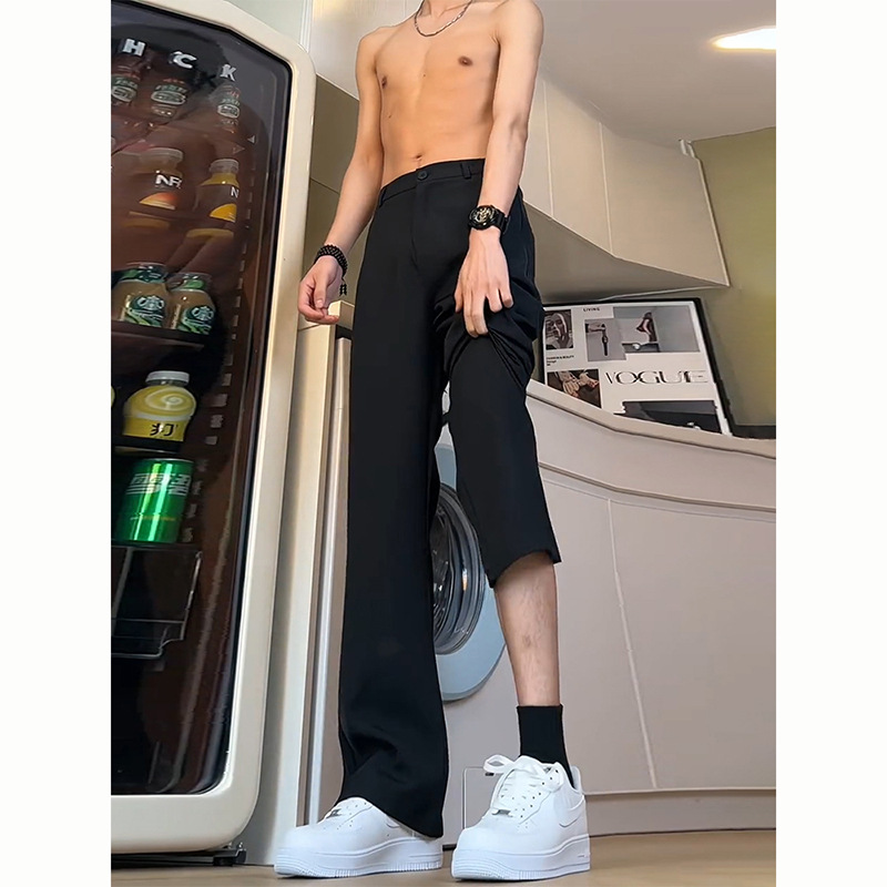 Black straight pants men's summer high waist slim scimitar flared trousers