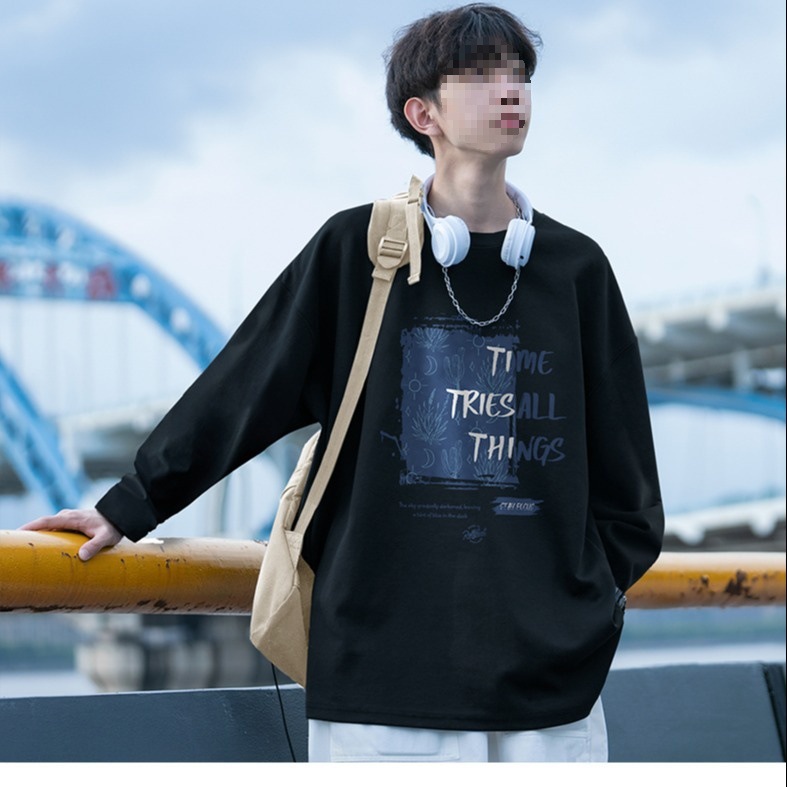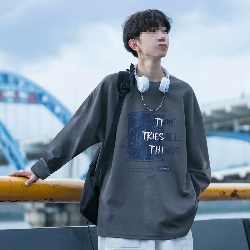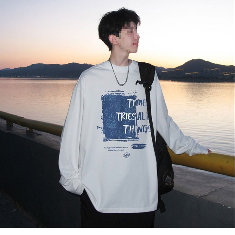 Long-sleeved T-shirt autumn bottoming shirt long-sleeved autumn Hong Kong style print loose trendy men's clothing tops