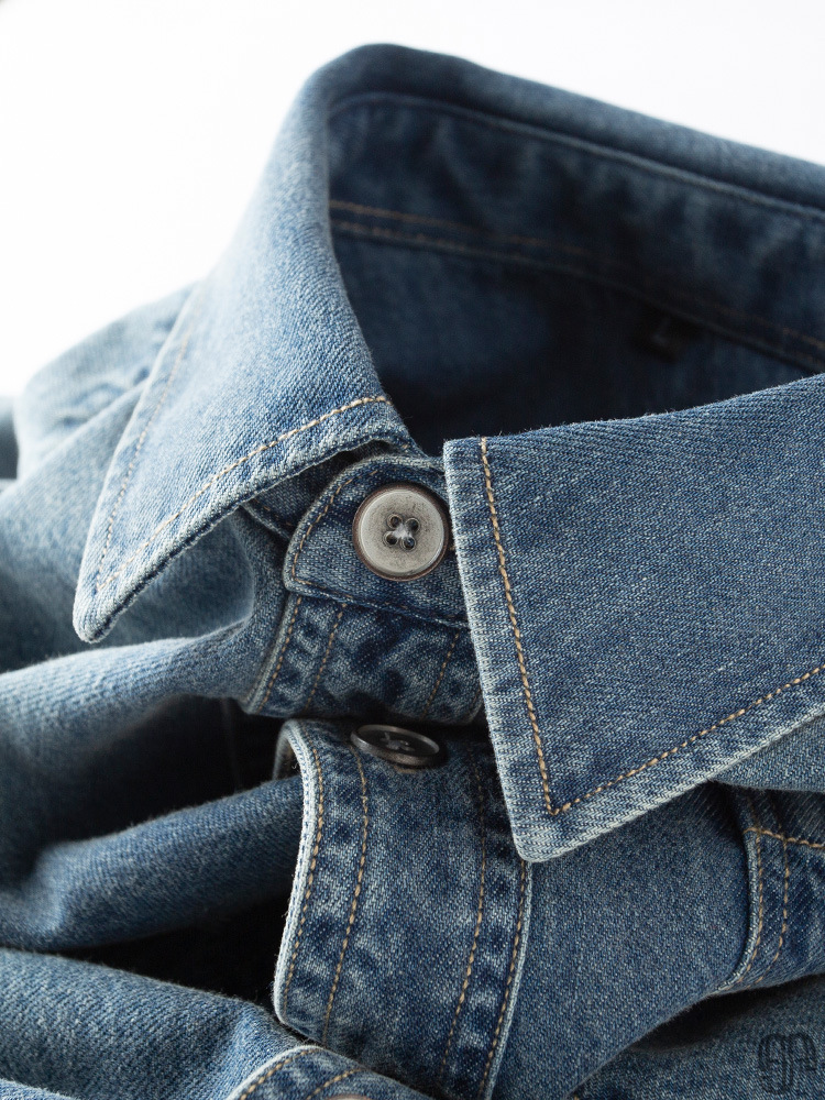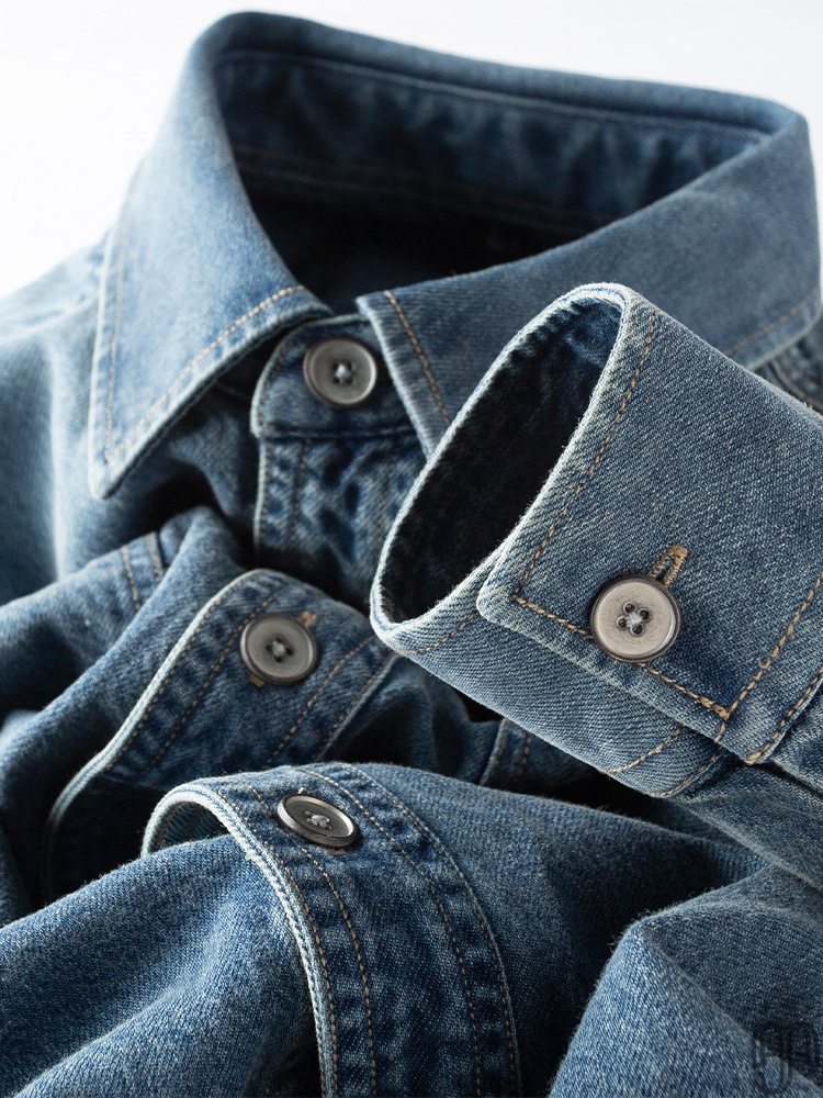 Pure cotton skin-friendly spring thin denim shirt men's long sleeves